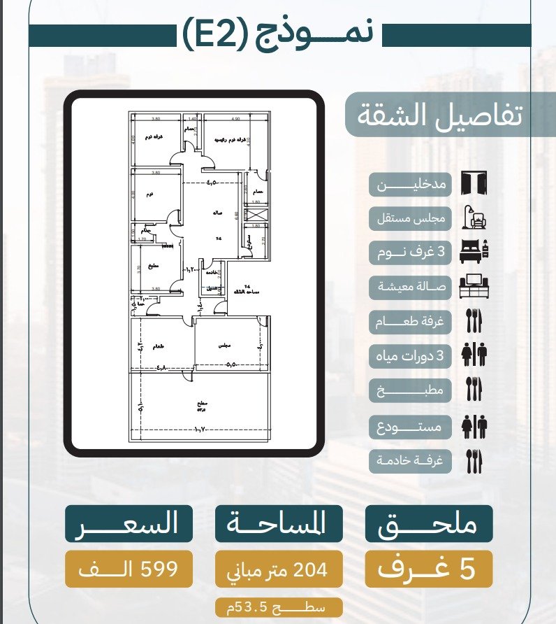 ملحق نموذج E2 : ٥ غرف المساحة الاجمالية 257م