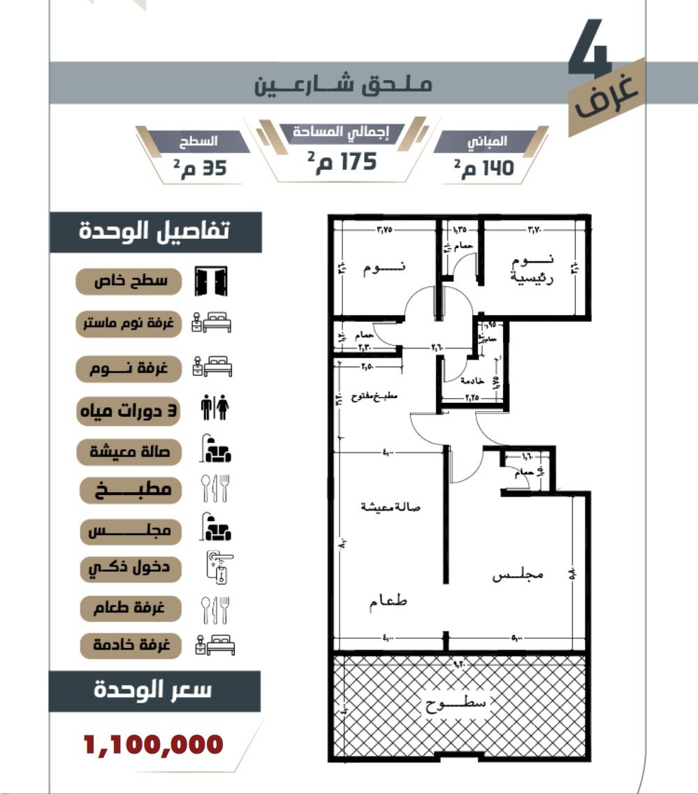 ( 140م مباني 35م سطح )