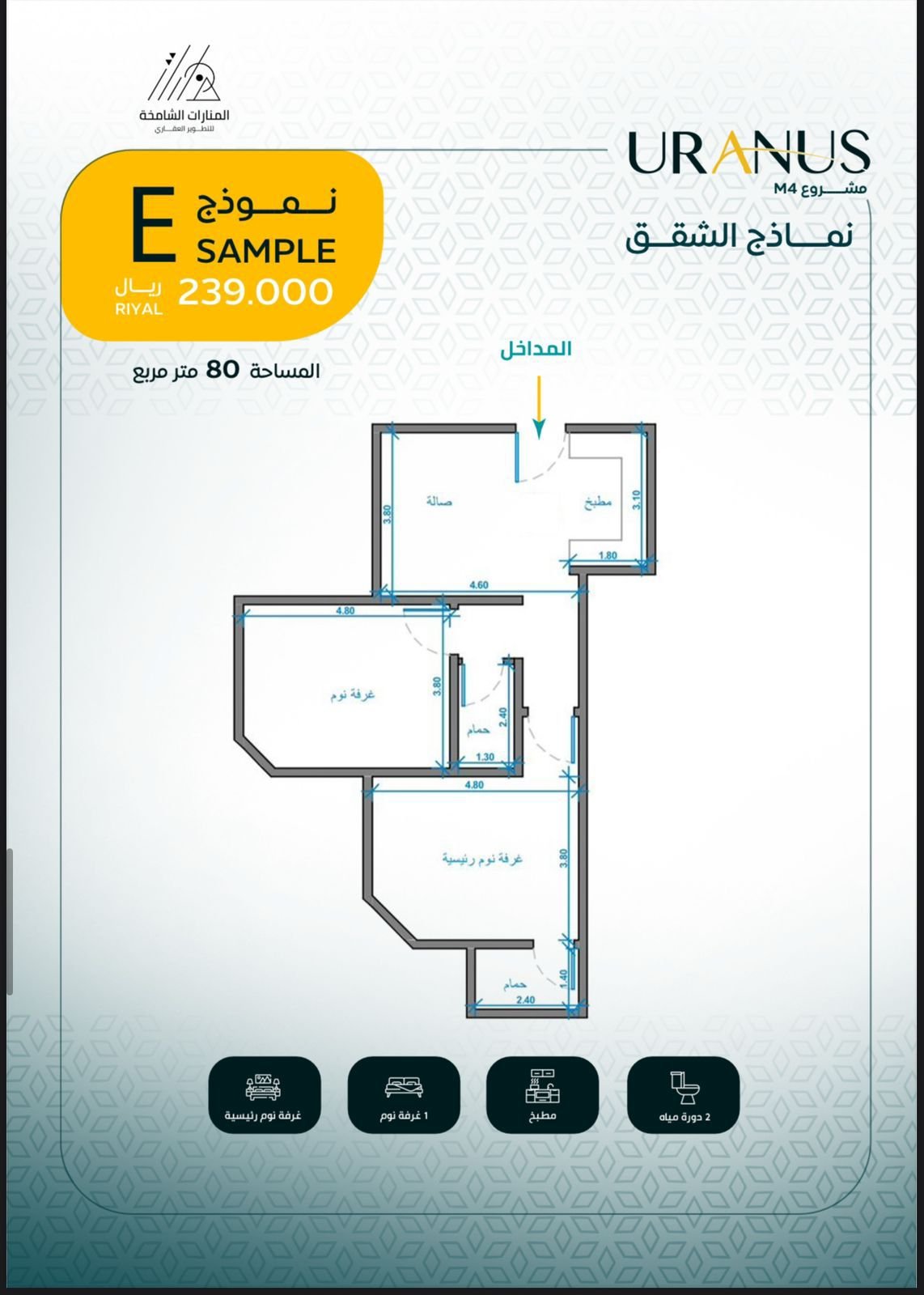 تبدأ المساحات من 80م – 228م